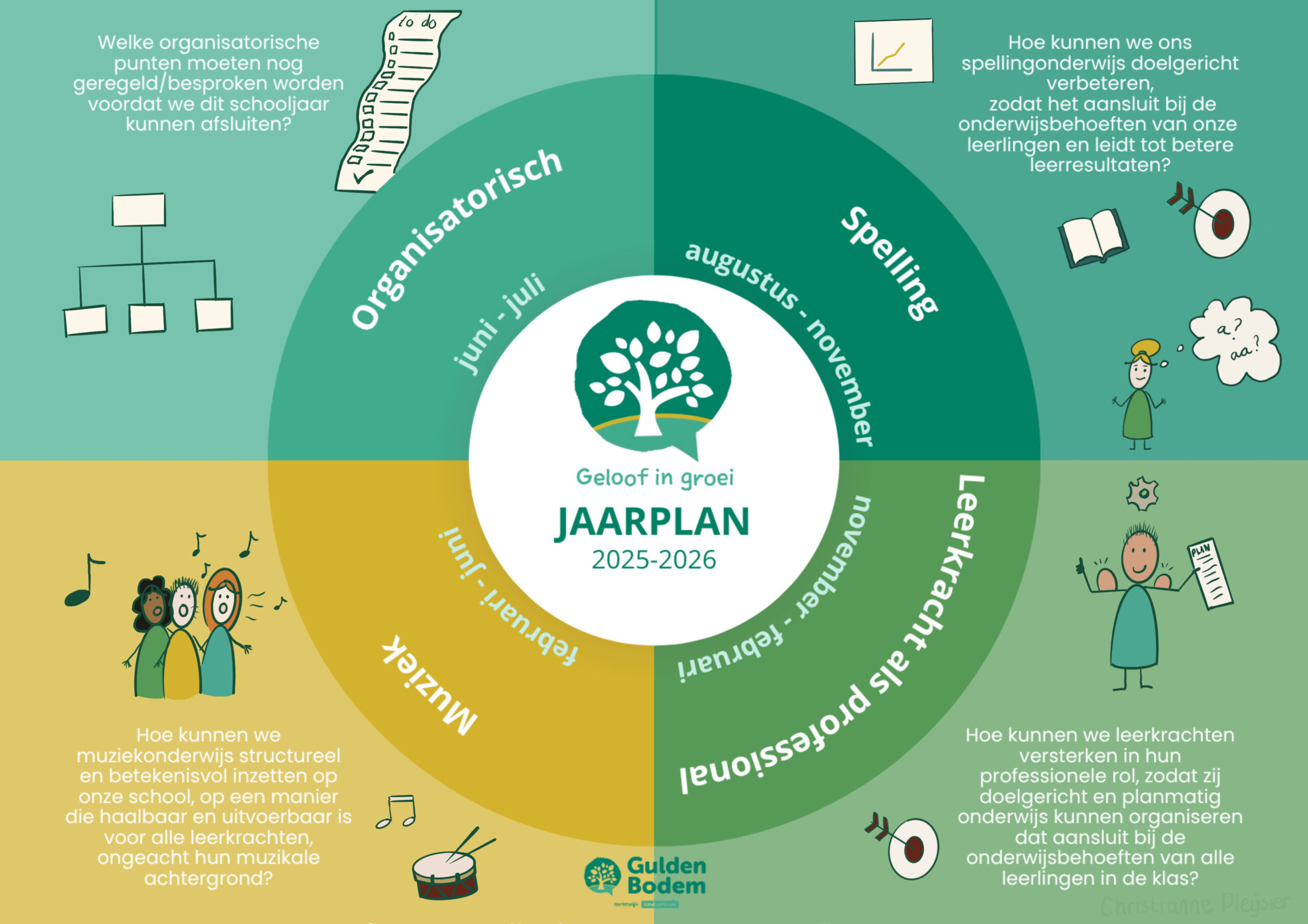 Onze school heeft een meerjarenbeleidsplan. Dat noemen we het schoolplan. In dat plan verwoorden we de ontwikkeling die we door willen maken in een periode van vier jaar. Ons jaarplan is daar een uitwerking van.